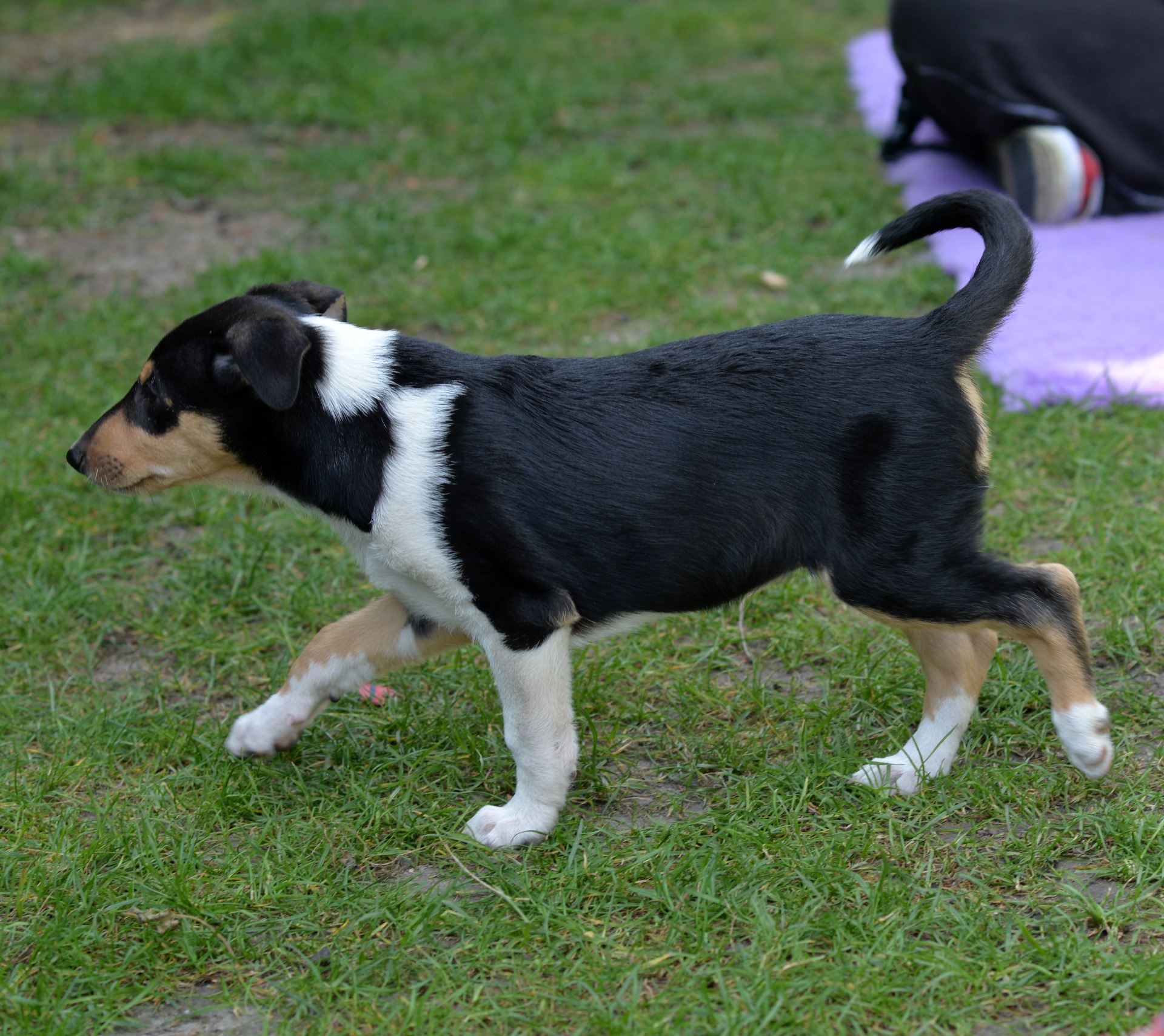 1. den - Jako čtvrtá se narodila trikolorní "nejmenší" fenečka, která dala mamince Suri trochu zabrat (šla takzvaně na sucho). Má velmi podobný křidýlkový límeček jako její zlatá sestřička.