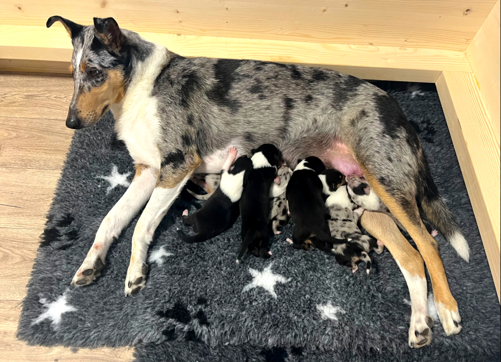 Narodilo se 6 krásných štěňátek - 4 pejsci (2 trikolor, 2 blue-merle) a 2 fenky (trikolor).