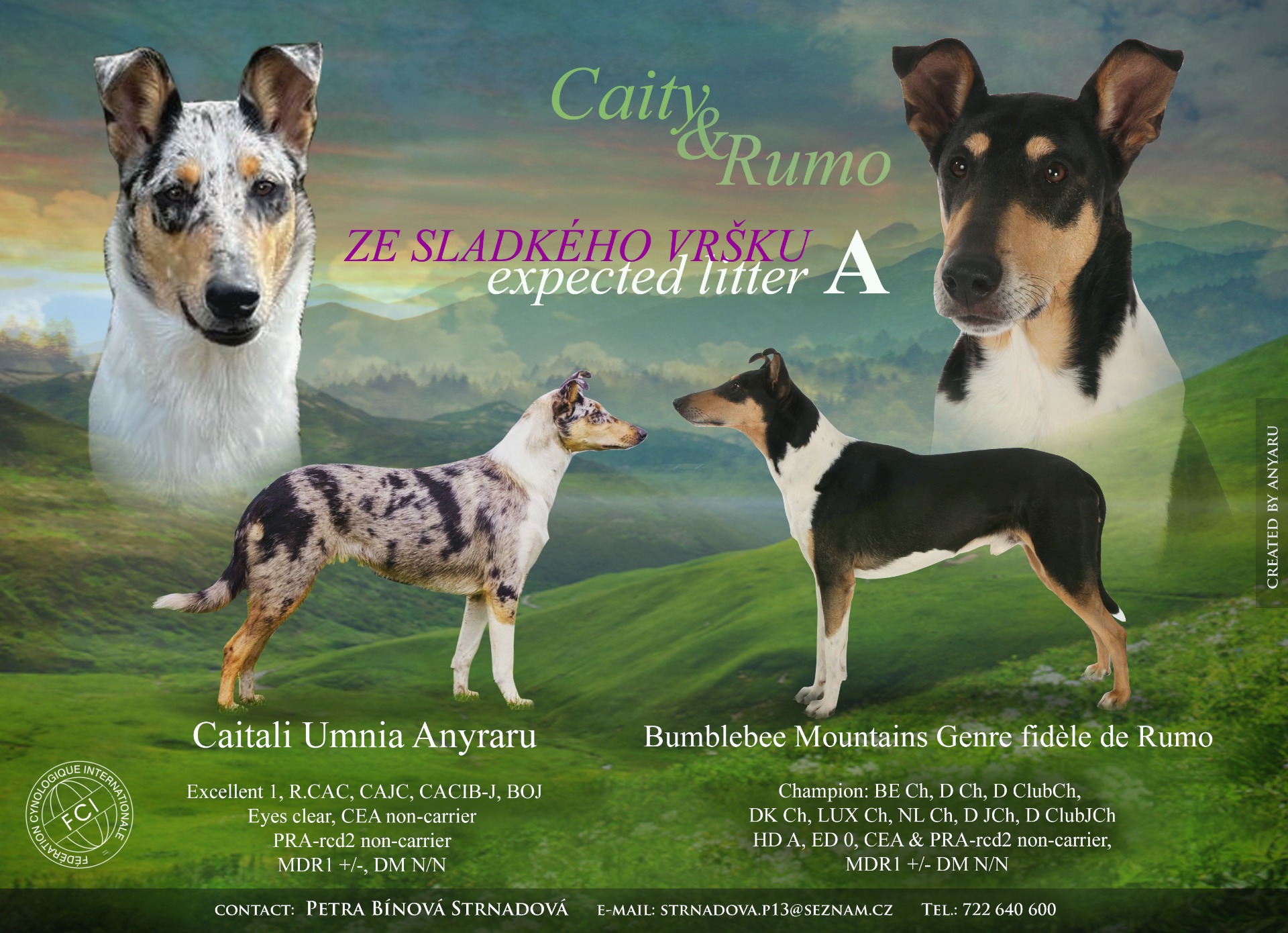 12.9.2025 se Caity - Caitali Umnia Anyaru (Dcera naší Suri a Merkiho) a Rumo - Bumblebee Mountains Genre fidèle de Rumo stali hrdými rodiči 8 krásných štěňátek. Více informací na webových stránkách chovatelské stanice Ze Sladkého vršku. Odkaz v databázi krátkosrstých kolií.